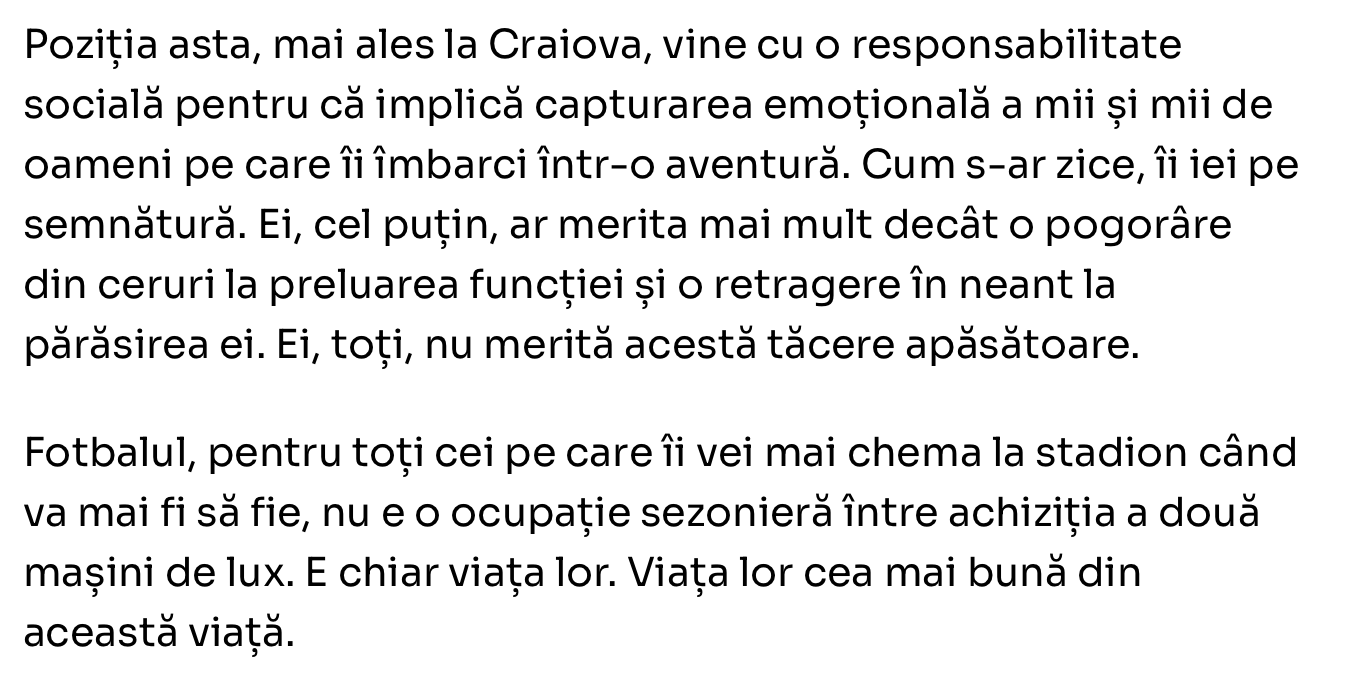În caz că v-a scăpat, merită să citiți un editorial foarte bun semnat Radu Naum, în Golazo.ro. E o scrisoare adresată fugarului Mirel Rădoi, care confirmă că Naum rămâne unul dintre editorialiștii de top de la noi.